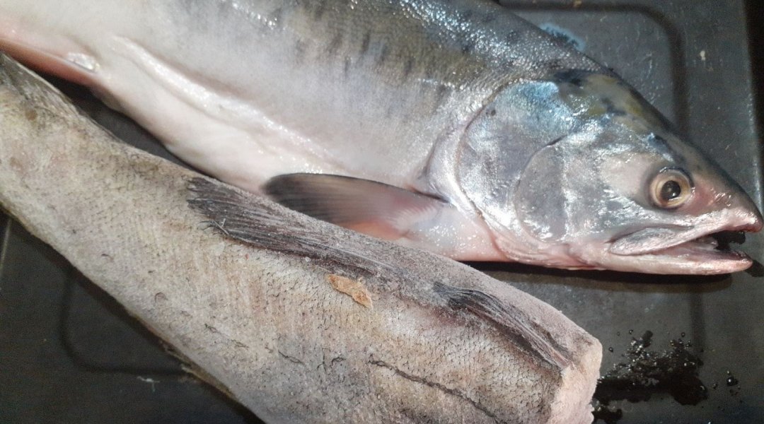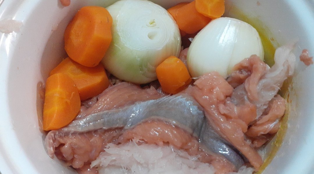 Отделила от рыбки филе, сняла кожицу, добавила остальные ингредиенты и взбила блендером. Жарила при 120 градусах, на тефлоновой сковородочке 20 минут по 10 минут с каждой стороны под крышкой. Панировка - пшеничные отруби. Фарш липнет к рукам, формируются котлетки довольно сложно.