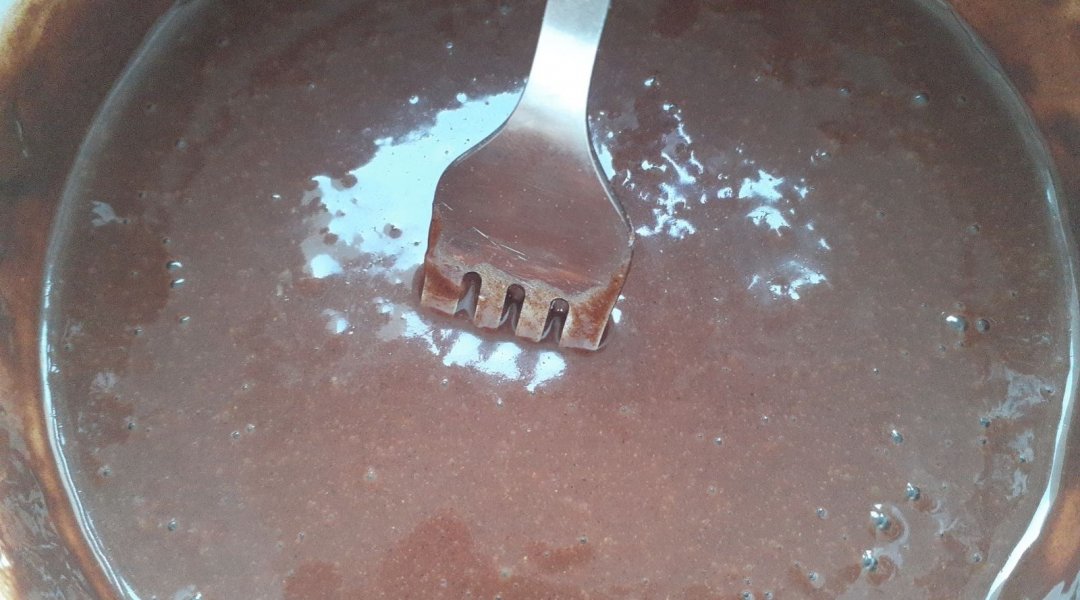 К полученной смеси просеяла муку, соль, разрыхлитель, какао и перемешала до однородности. Накрыла кастрюльку с тестом пищевой плёнкой и оставить на полчаса.
