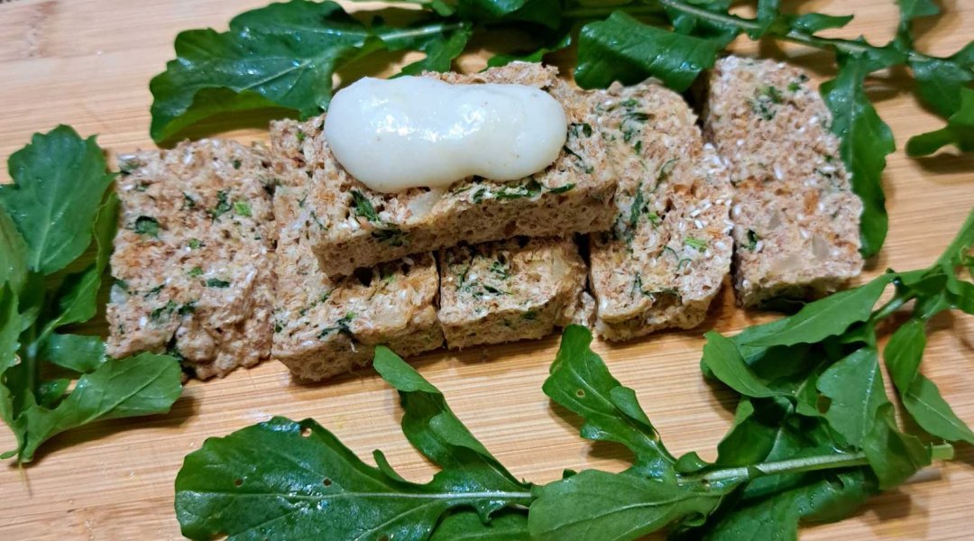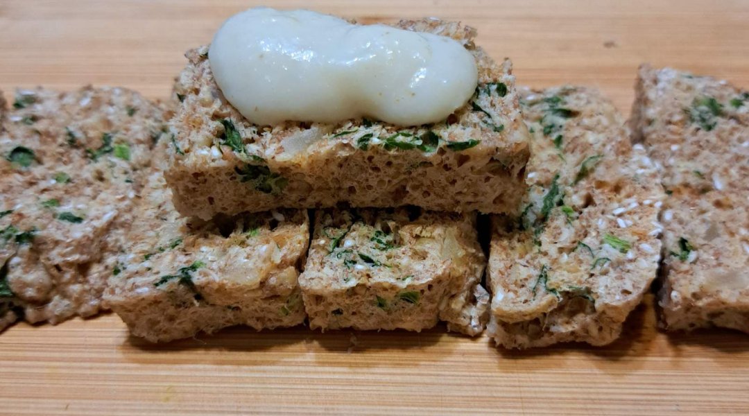 Хлеб с ржаными и овсяными отрубями с томатом и чесноком