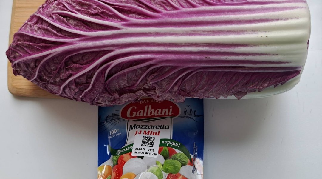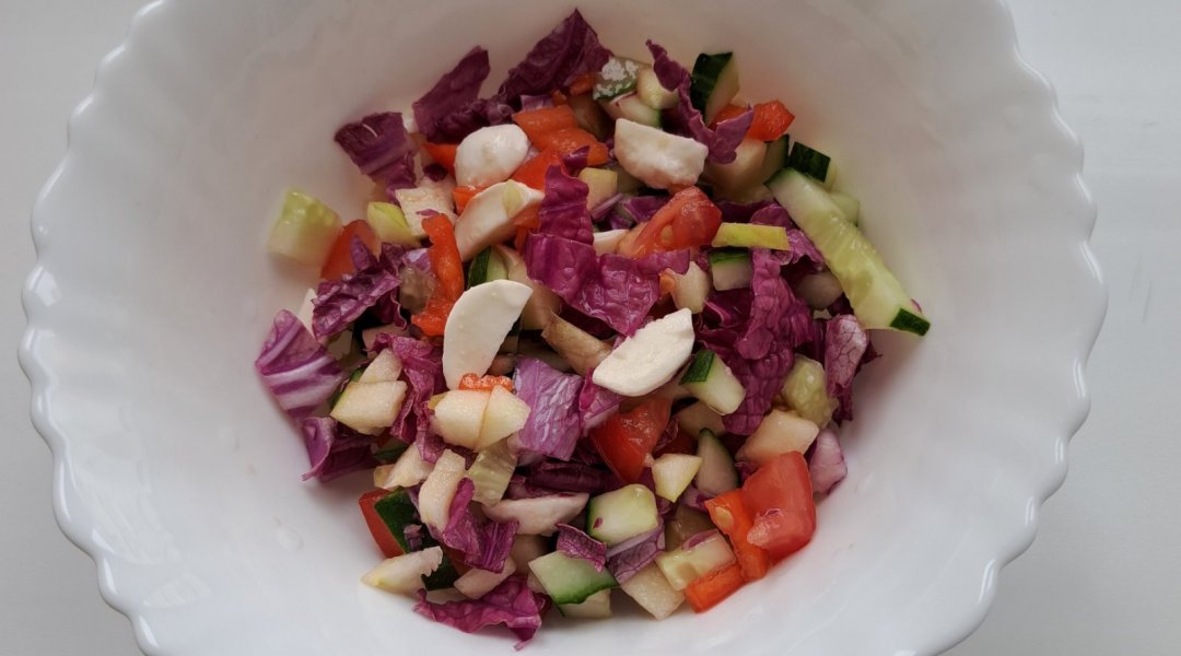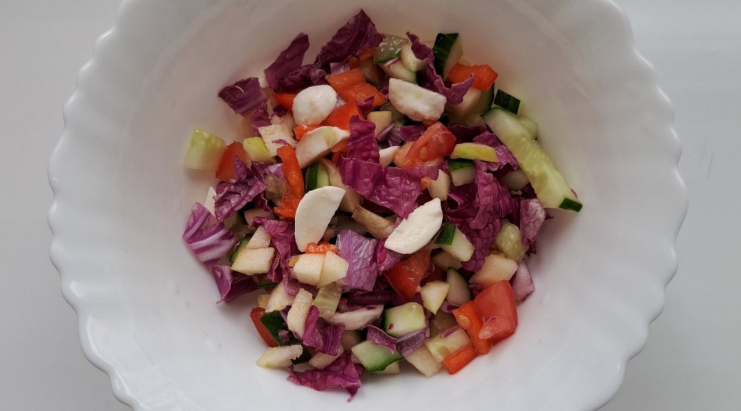 Салат из огурца, яблока, красной пекинской капусты, сыра моцарелла