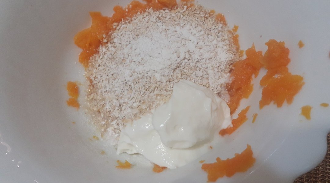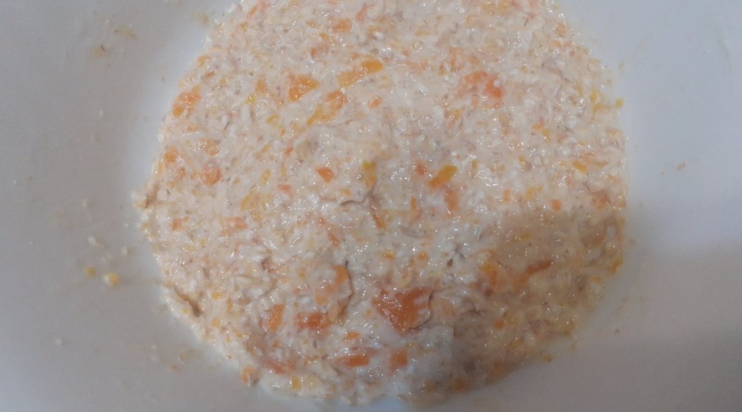Все ингредиенты смешала. Запекла в микроволновой печи 700 ватт 5 минут.