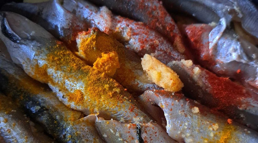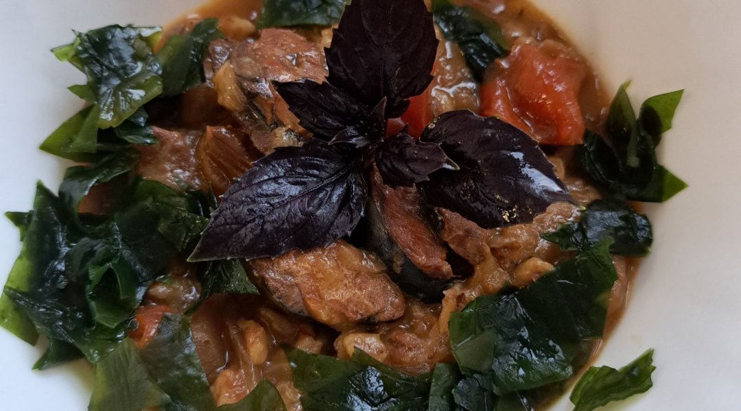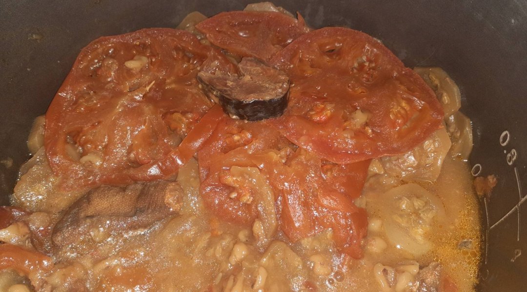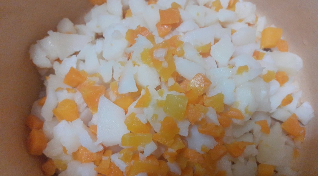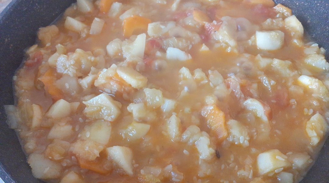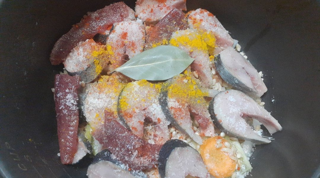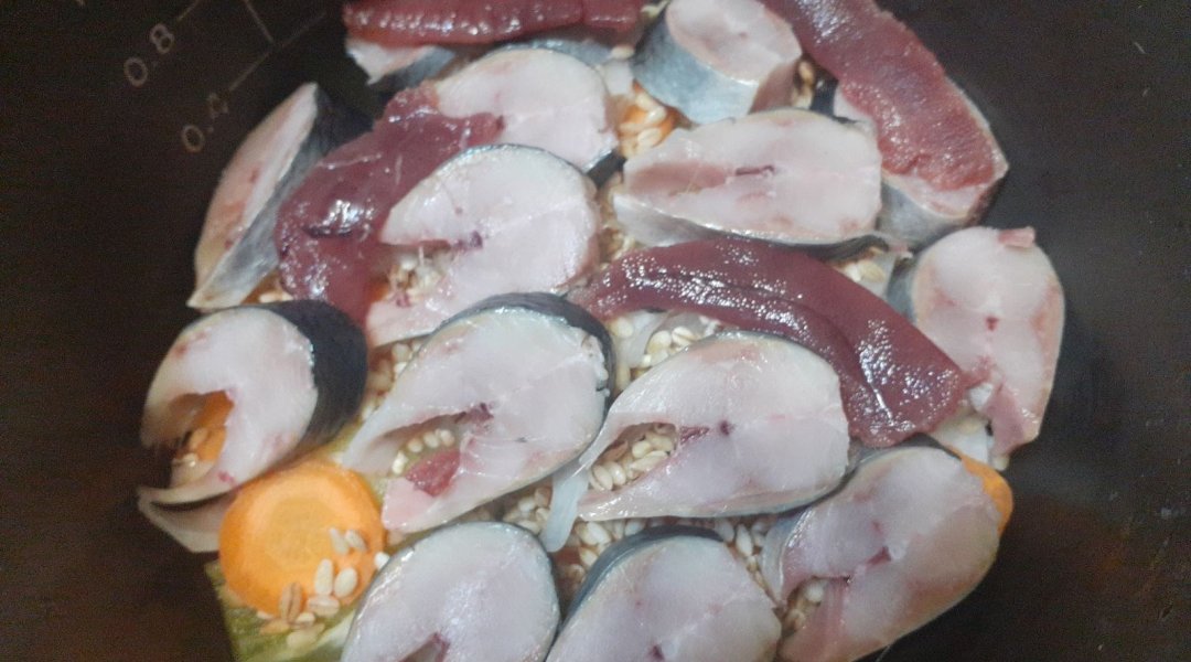 | Мойва тушёная с кабачком, луком, морковью, сладким перцем |