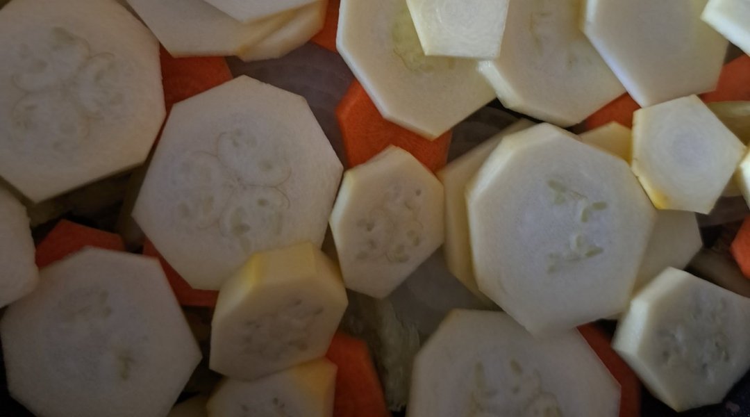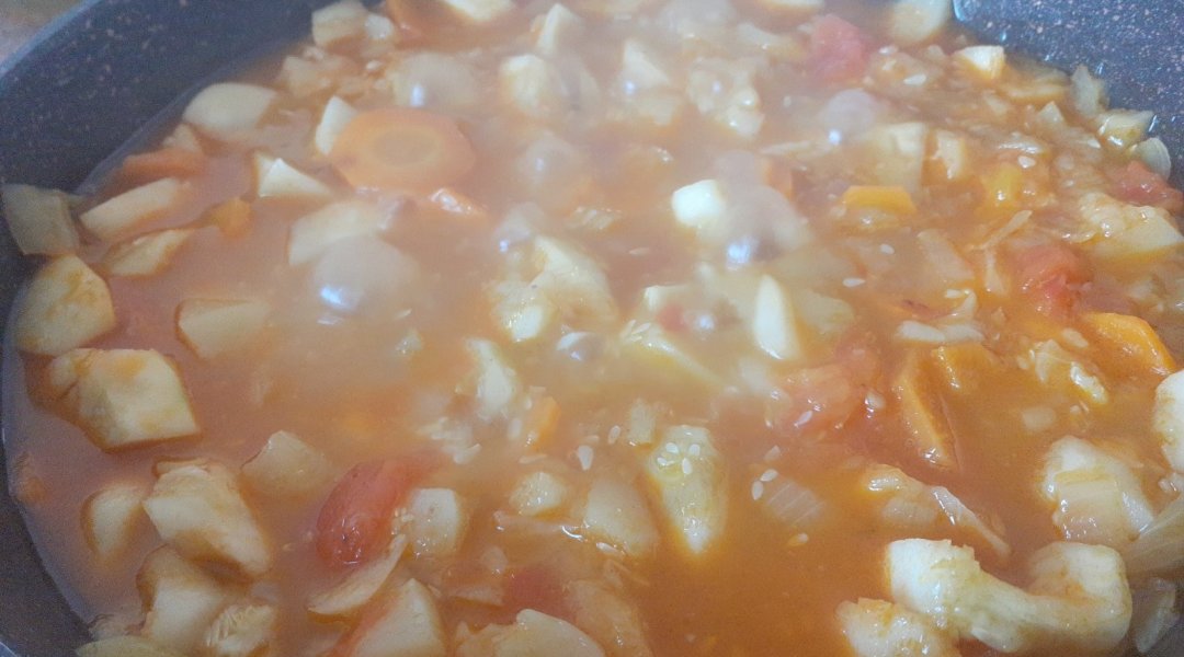 | Заправка из патиссонов запечённых с томатом, сладким перцем, тушёных с репчатым луком и морковью |