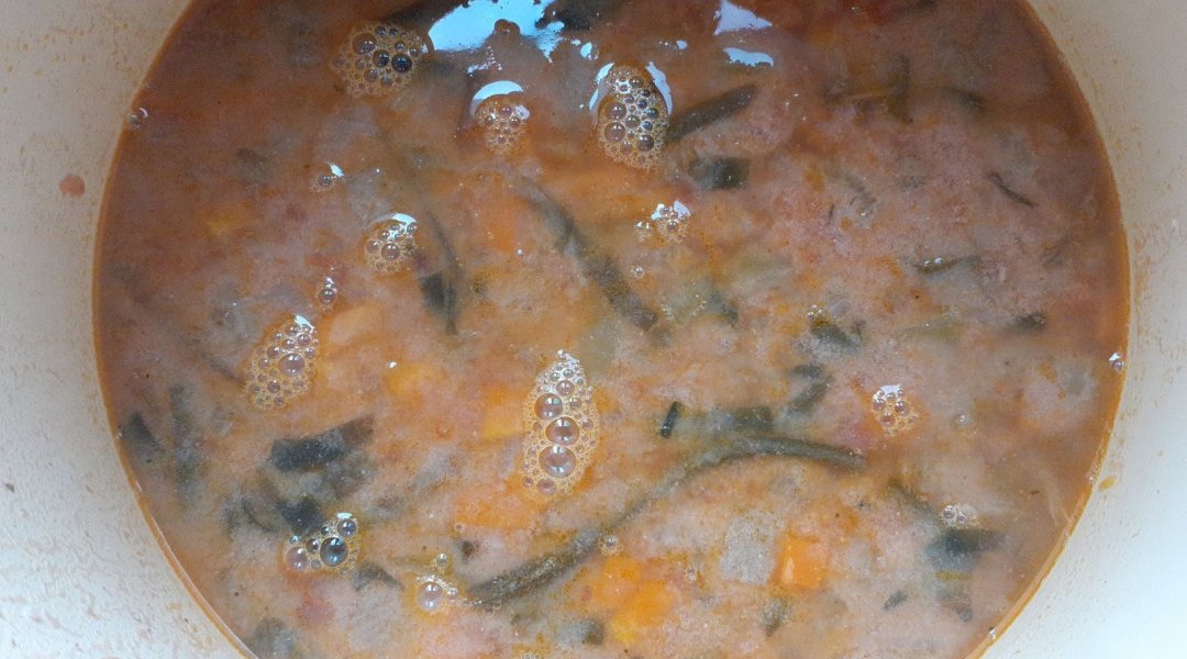 | Суп на курином бульоне со сладким зелёным перцем, рисом и картофелем |