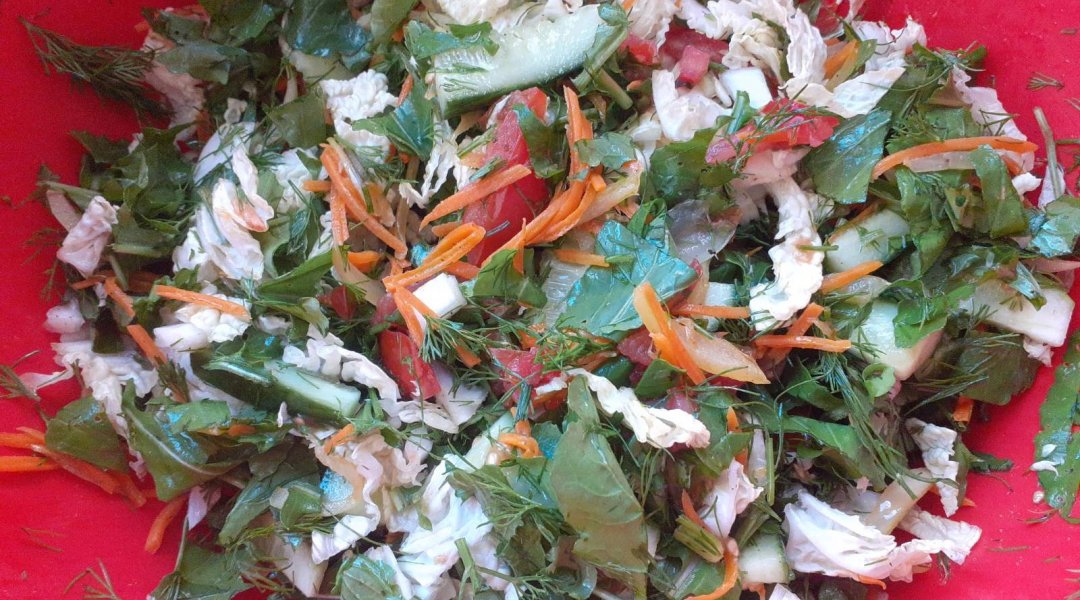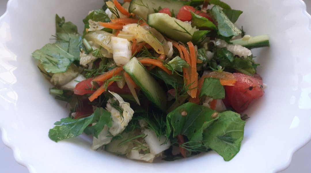 | Салат из пекинской капусты, рукколы, огурцов, помидор | 200 г |