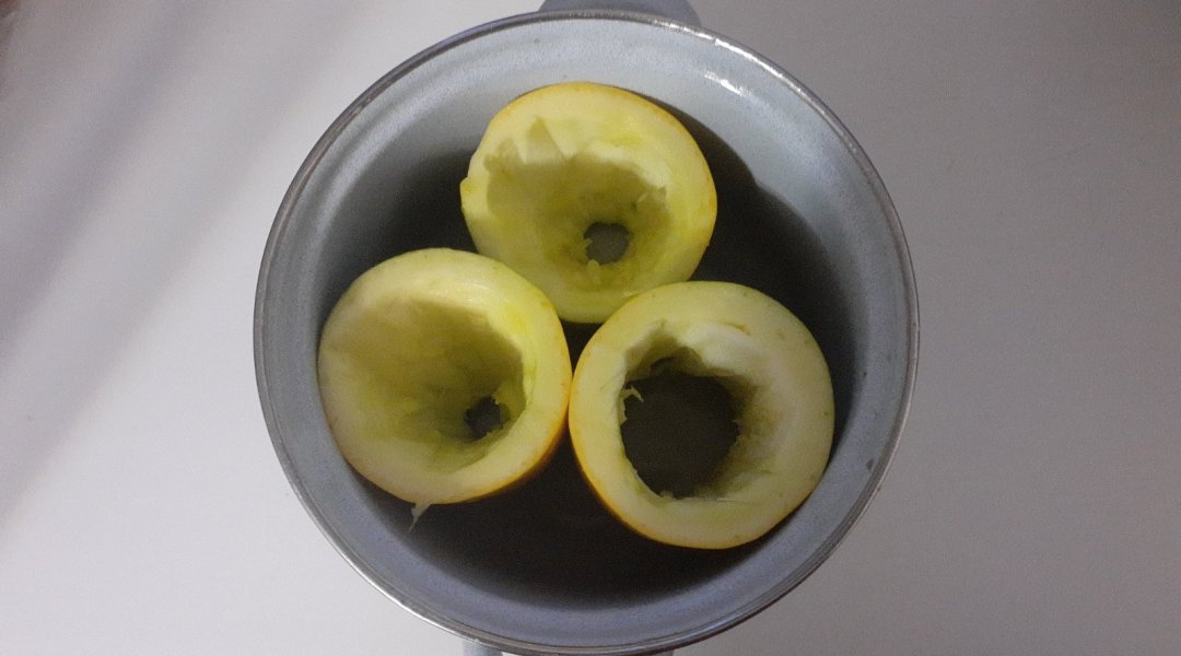 Сладкий перчик запекла , выложила в ледяную воду и сняла кожицу.