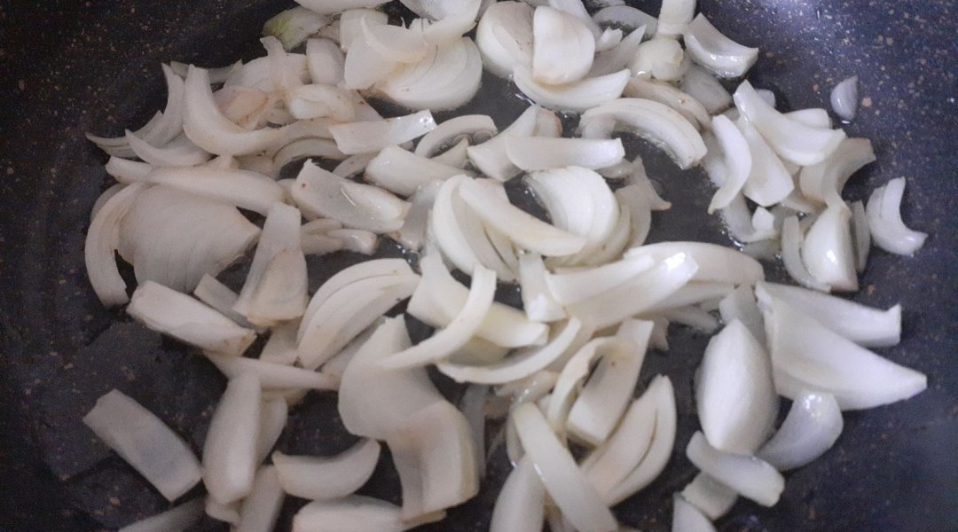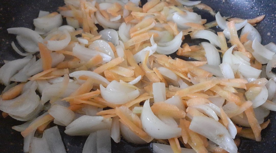 Лук репчатый почистила, порезала, поджарила на оливковом маслице.