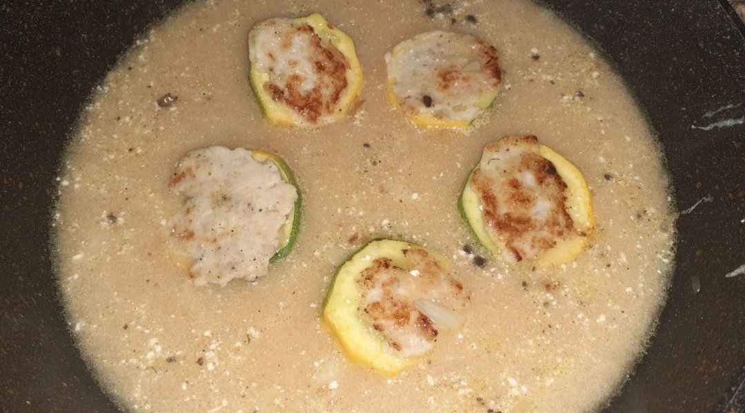 Блюдо: "Кабачок фаршированные грудкой индейки и цыплёнка в сметанной заливке" готово.