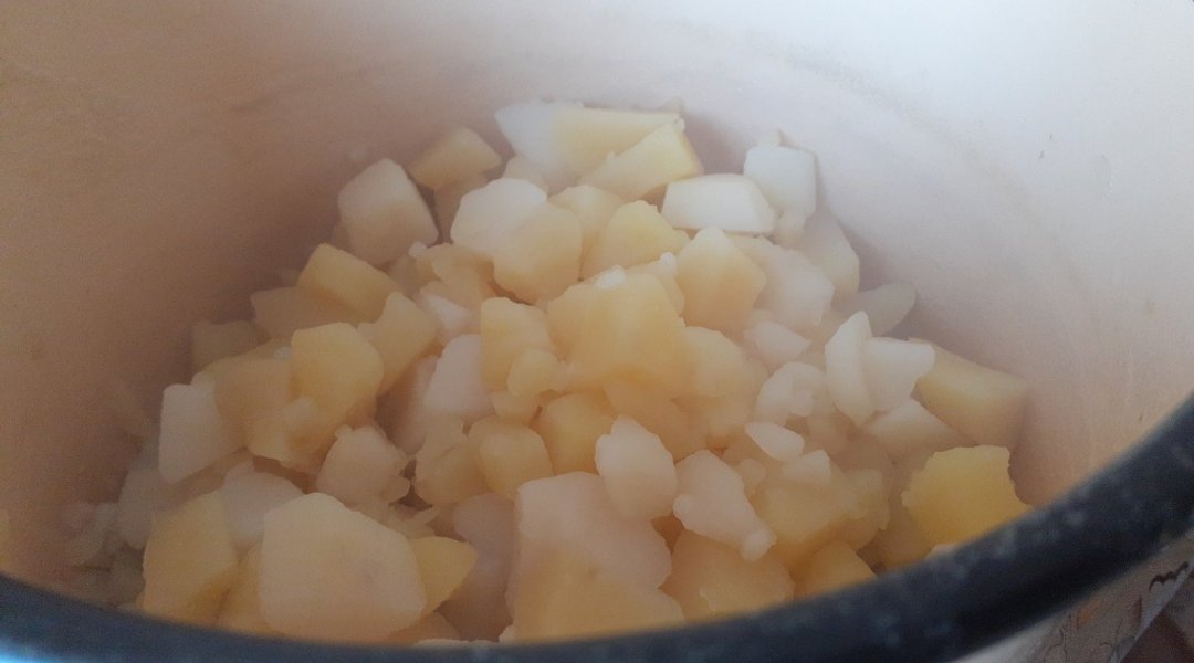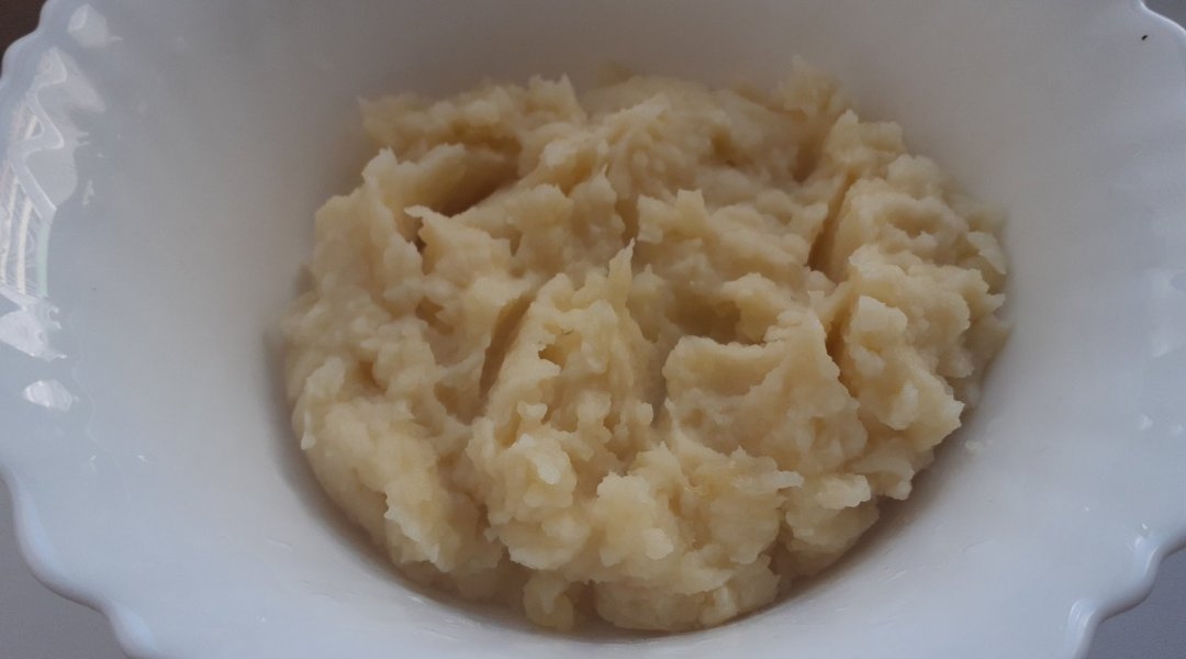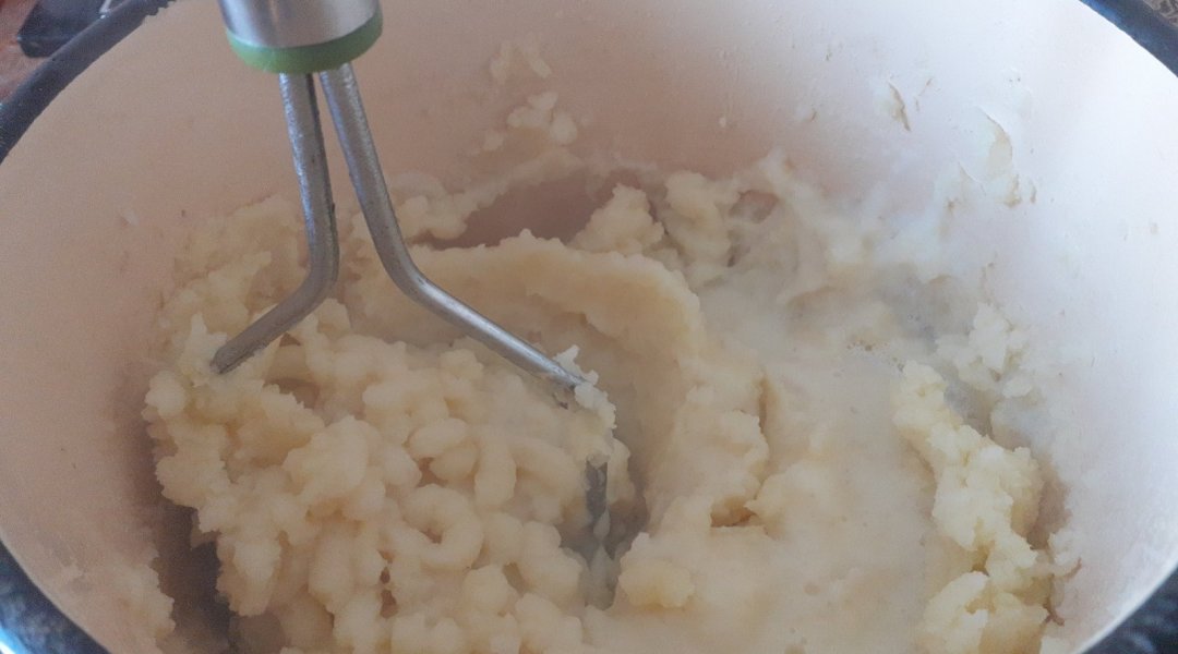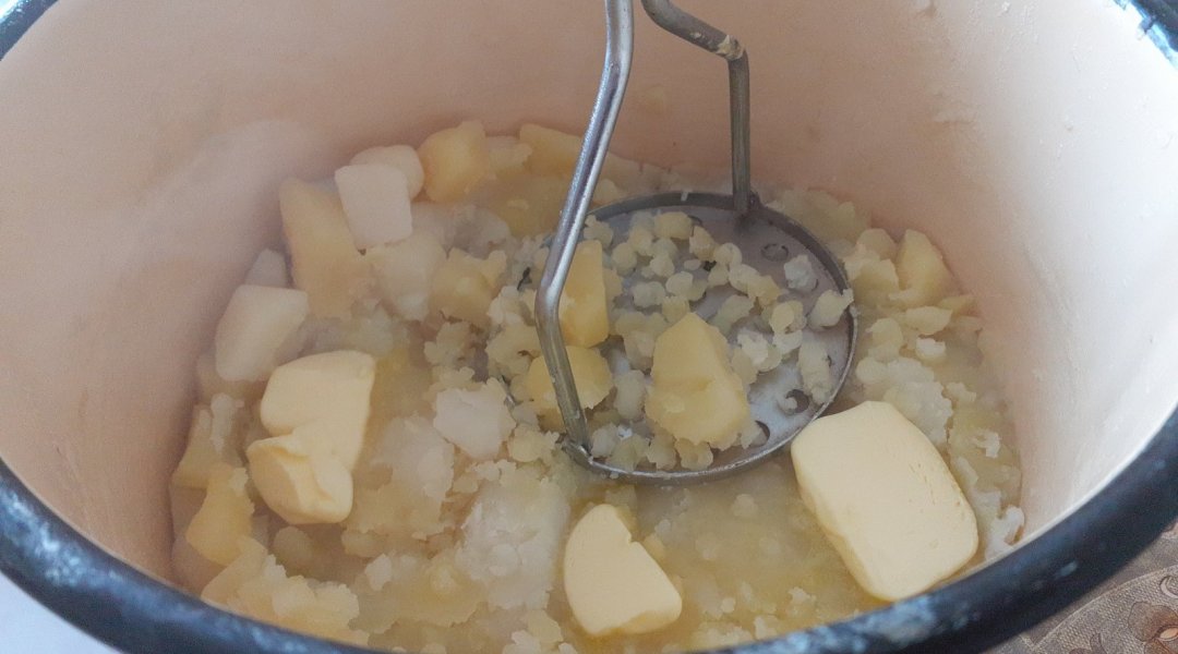 Горячее молоко вылила в картофельное пюре и хорошо растерла.