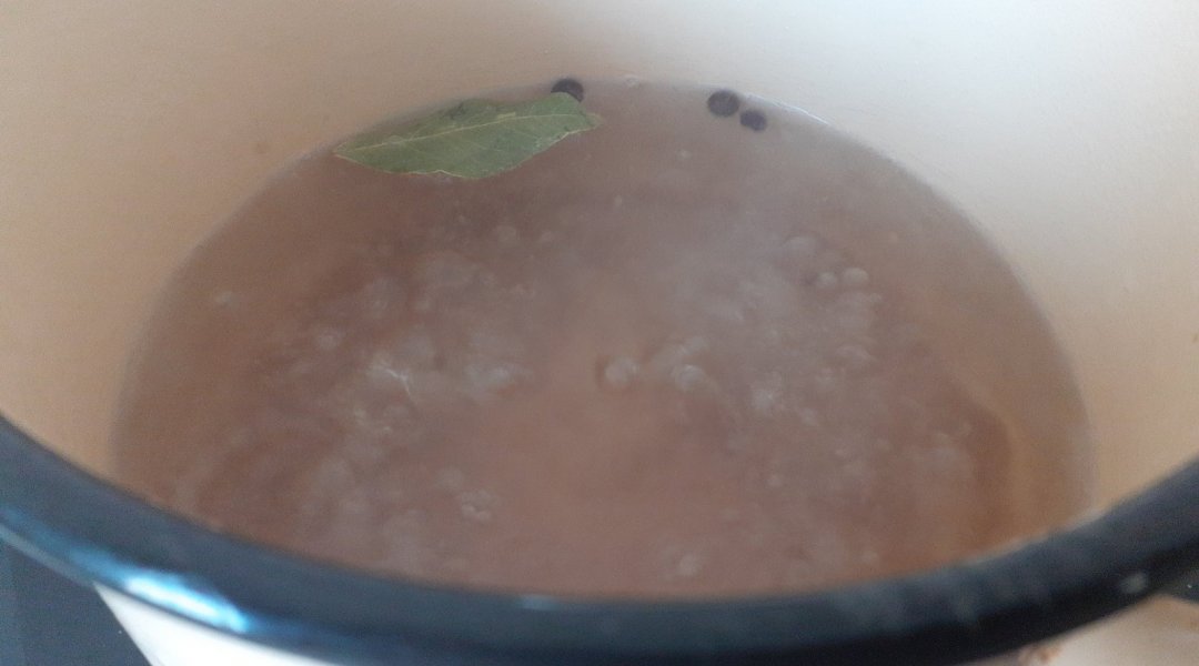 Налила воды положила три горошинки душистого перца и и один лавровый лист. При закипании высыпала картофель в бульон и варила 25 минут .