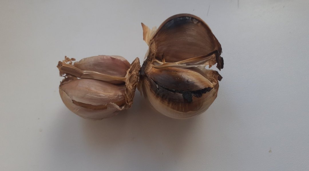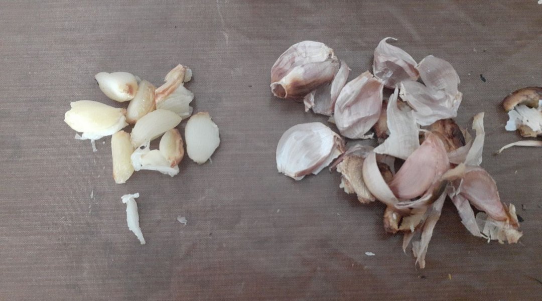 Запечённый в духовочке чеснок при 180 градусах 25 минут. Очистила, получилось 10 грам запечённого чесночка.