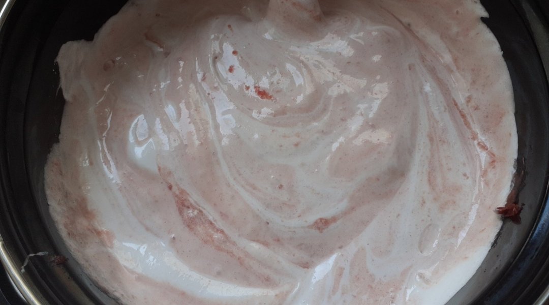 Смешала остывшую яблочную массу со взбитым с сахаром яичным белком. Немного выложила в чашечку и поставила в холодильник. Для скрепления высушенных листов пастилы между собой.