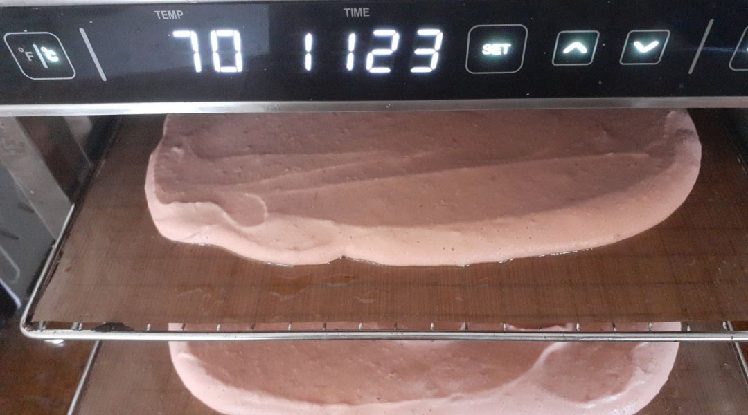 Вылила на них полученную яблочную массу. И сушила при 70 градусах 8 часов. Затем скрепила листики пастилы между собой оставленной в холодильнике яблочной массой и сушила полученный тортик ещё 4 часа.