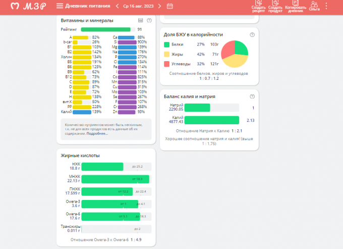 Чтобы увидеть отчеты по питанию и график веса, необходимо войти.