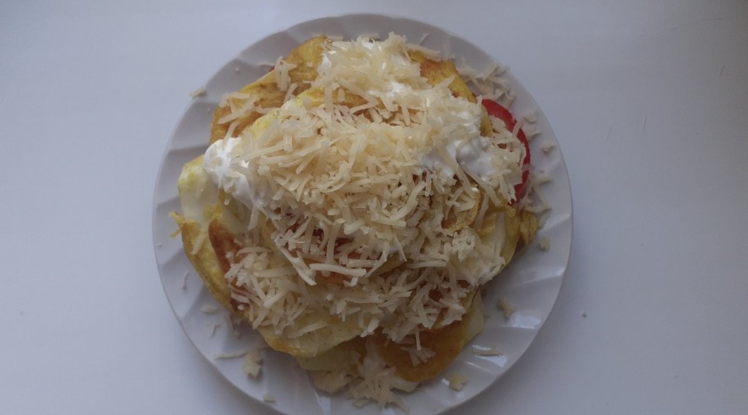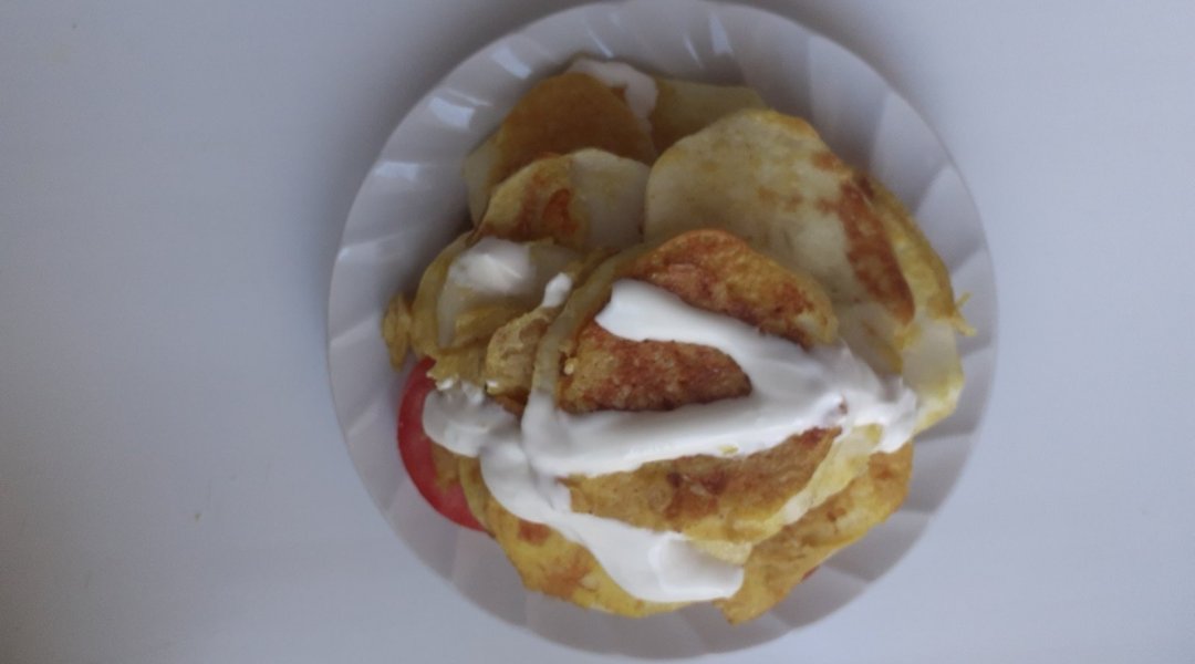 Вкушала, разрезав на мелкие кусочки, перемешав со сметаной.