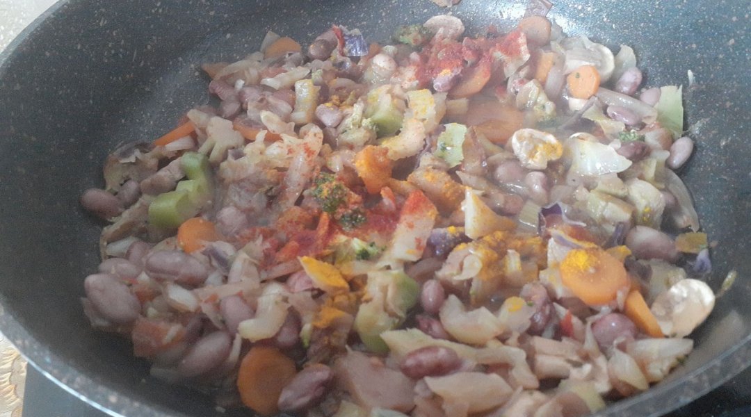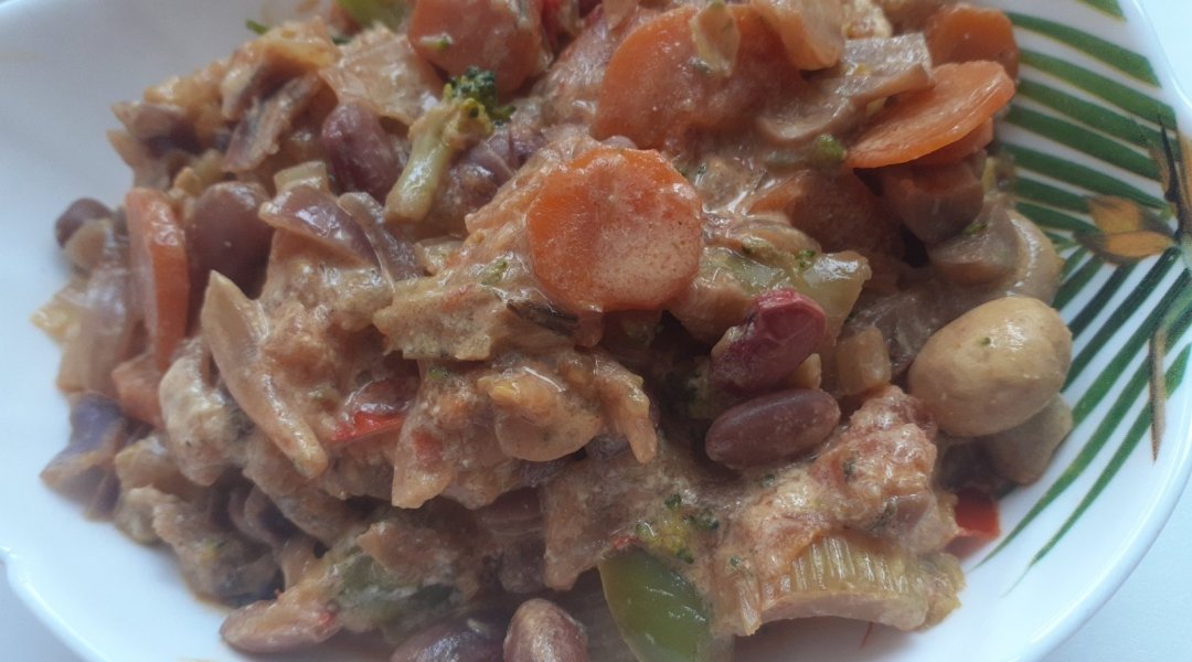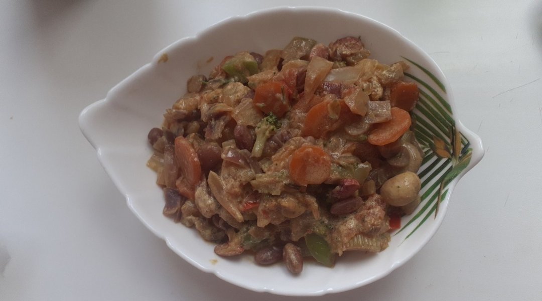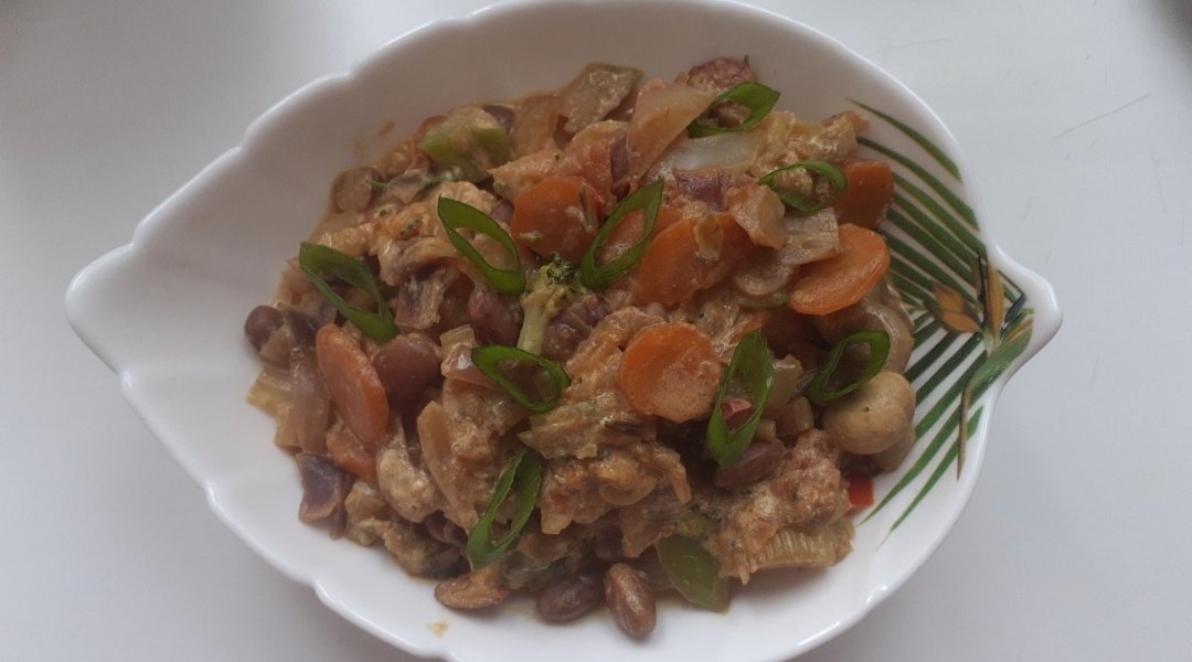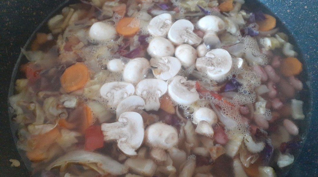 | Капуста тушёная с красной фасолью и шампиньонами |