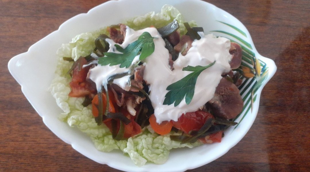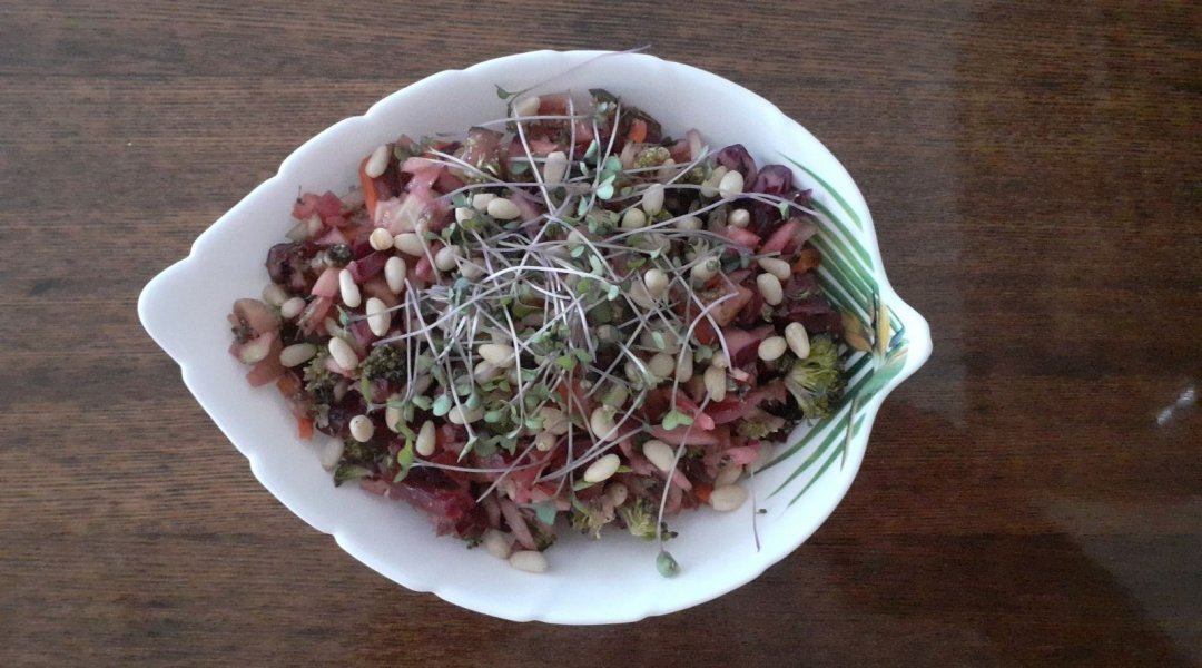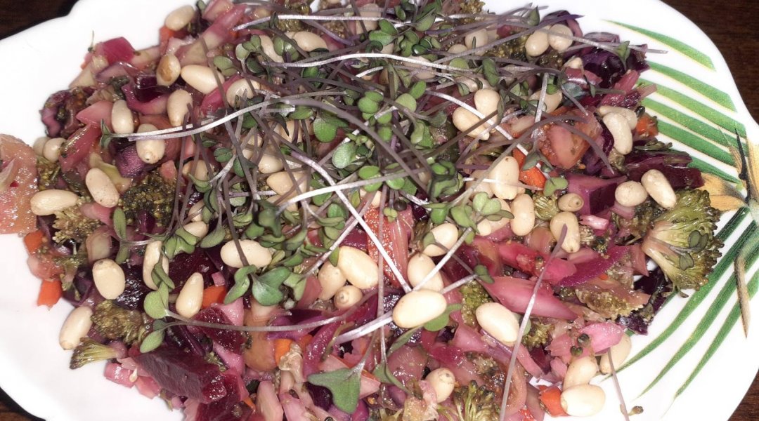Овощной салатик с кедровыми орешками и микро зеленью.