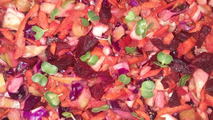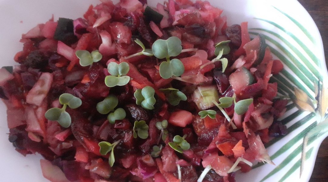 Овощной  салатик из сырых овощей с микро зеленью редисочки  с утра=))