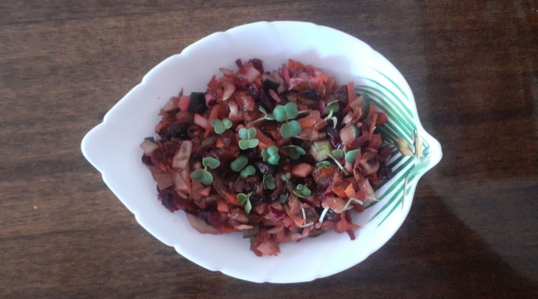 Овощи, помыла, почистила, мелко нарезала.Всё перемешала.