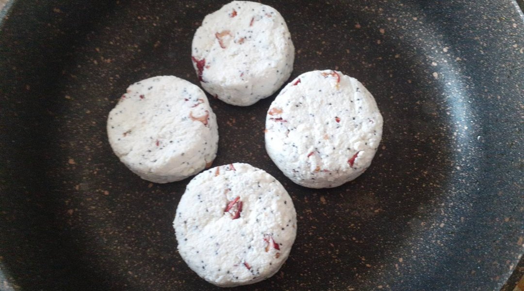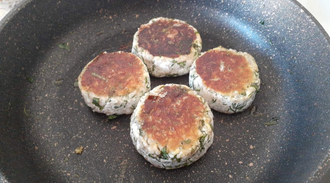 Получились вот такие солёные с укропом и петрушкой сырники.