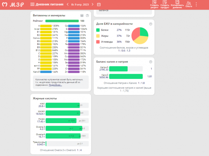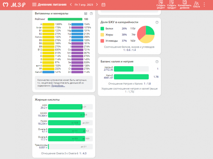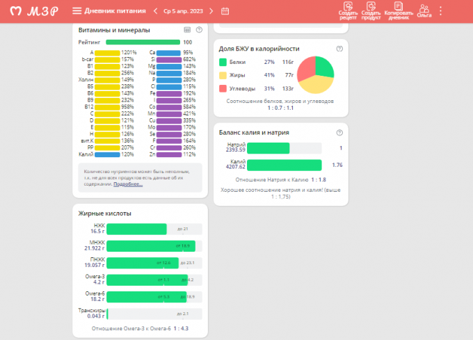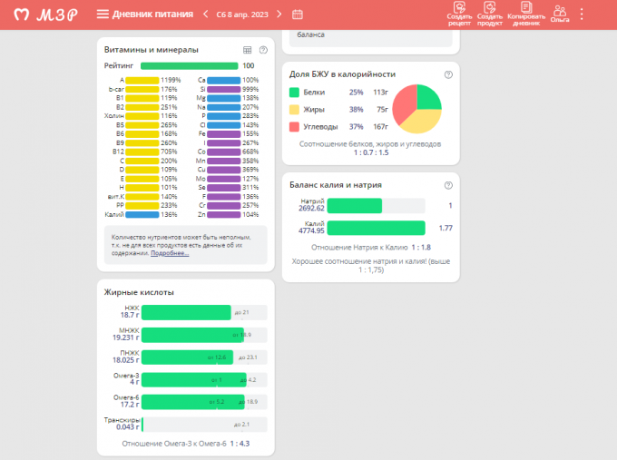 Чтобы увидеть отчеты по питанию и график веса, необходимо войти.