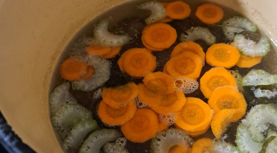 Вымыла , нарезала на кружки моркови и добавила в суп.Вымыла , нарезала на кубики картофель, добавила в суп.
