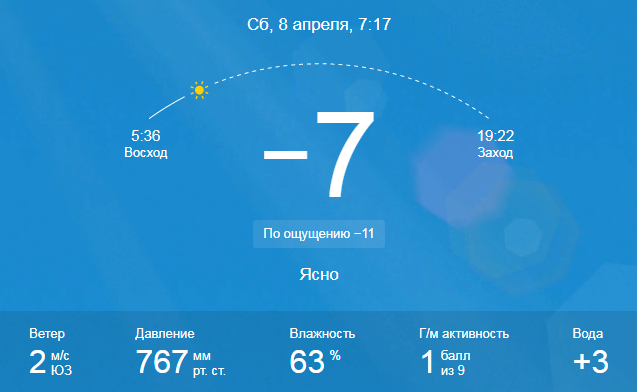 На улице, сухо, солнце, ясное небо, день обещает быть замечательным!