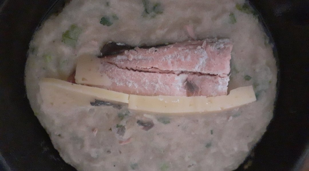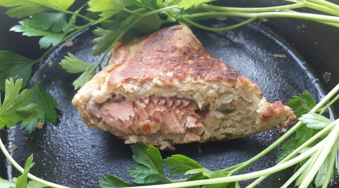 | Чебурек из патиссонов и зелёной гречки с горбушей и сыром |
