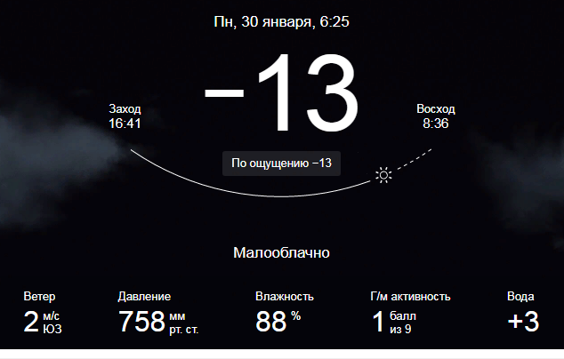 На улице прохладно, ветер не сильный, осадков нет, луна закрыта тучами, короткий световой день. А для того чтобы вырабатывался серотонин для настроения, нужен солнечный свет, сыр и мёд. Это я вчера профессора, врача диетолога Алексея Ковалькова послушала) Сыр с мёдом есть, а вот солнечный свет в наших широтах надо ловить, ночь длинная, день короткий , солнца мало. Придётся устраивать охоту за солнцем. Как только появится солнышко идти гулять=))
