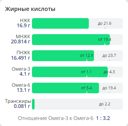 Калорийность - 113.7 кКал; белки - 9.2 г; жиры - 8.3 г; углеводы - 0.4 г на 100 г.