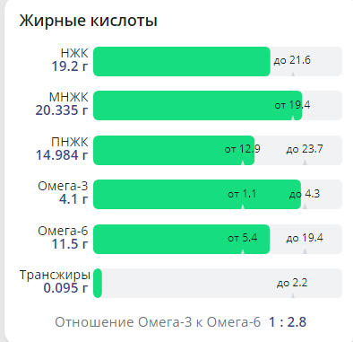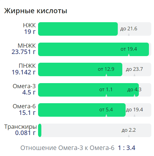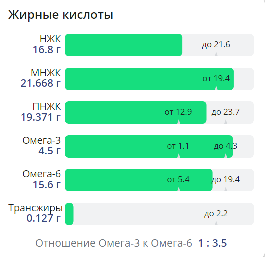 | Пищевые волокна | 1.3 г | 6.5% | |