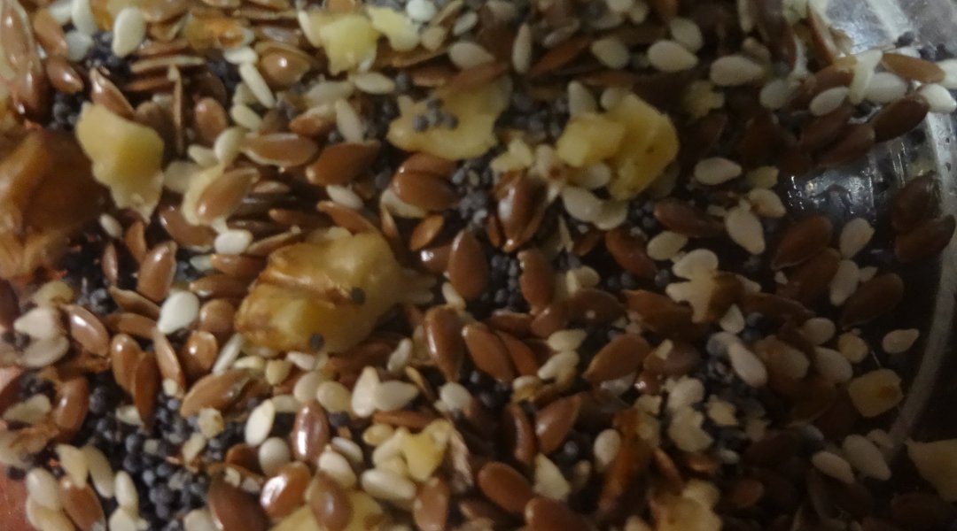 | Блинчики посыпанные семенами льна , кунжута, грецким орехом |