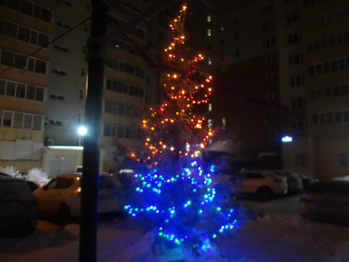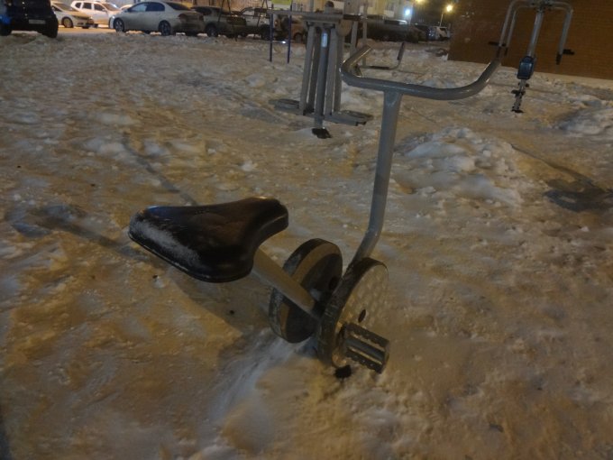 На улице хорошо так потеплело , но очень сильный ветер, аж кажется что унесёт. Нашла ещё одну замечательную ёлочку, а рядом с ней тренажёрную площадку. Зимой конечно не позанимаешься, но приятна тенденция, устанавливать во дворах тренажёры.