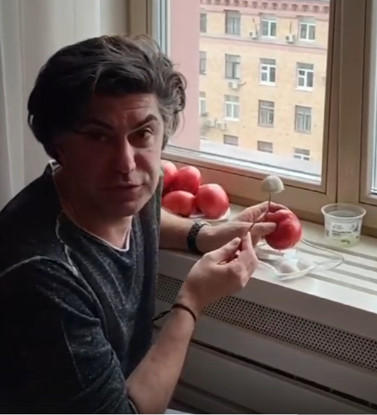 ест? Стакан с чистой водой стоит, видимо запивает чистой водой. Я