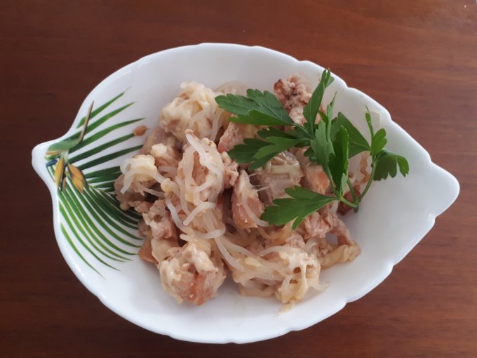готовности добавила ширатаки и сыр. Украсила петрушкой.