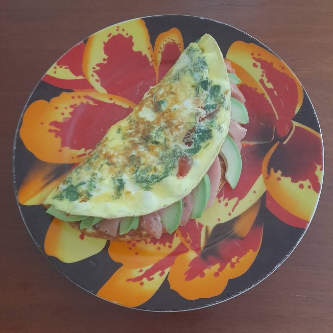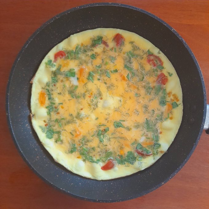 Поджарила блин из омлета, положила на половину блина