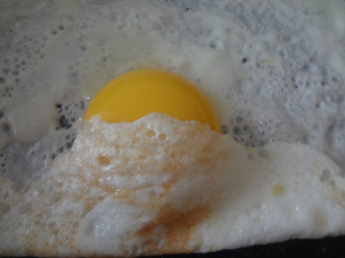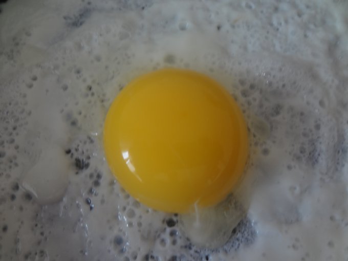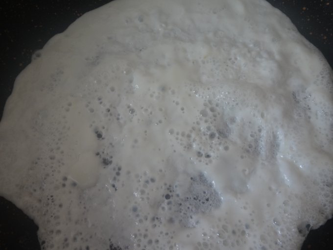 3.Выливаем белок на сковороду предварительно смазав её маслом и