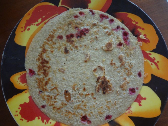 Сегодня лакомлюсь овсяноблином на молоке с брусникой.