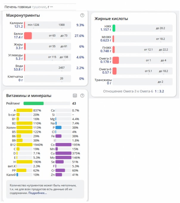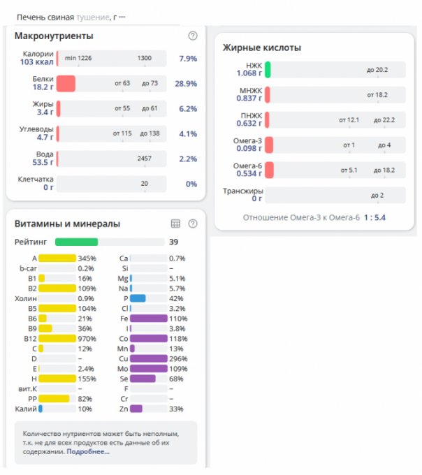 | Кол-во | Калории | Белки | Жиры | Углеводы | |