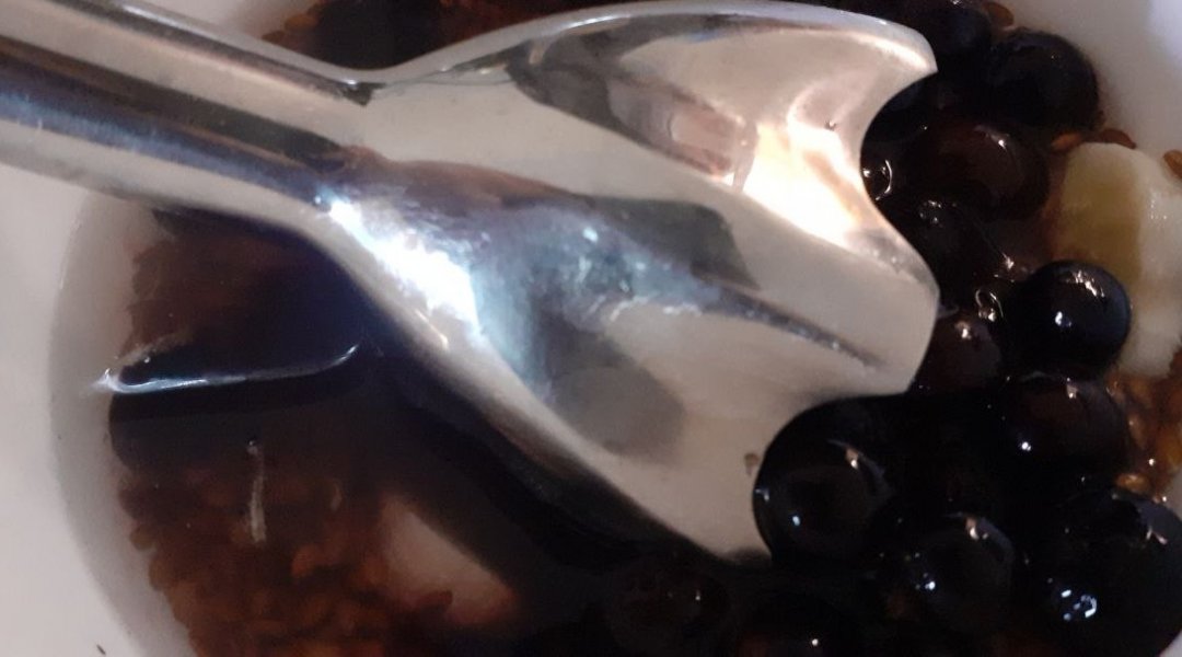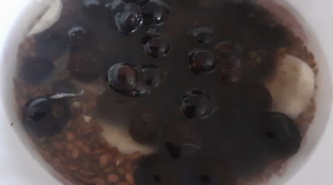 голубики.До состояния пюре.Каша из семян льна готова.Разогреть до