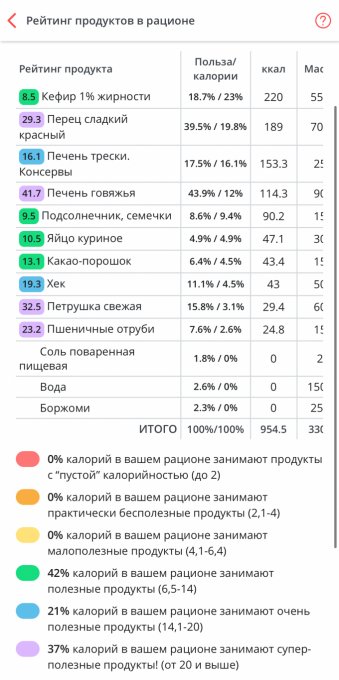 | Итого за день | 5700 | 1909 | 104 | 83 | 167 |