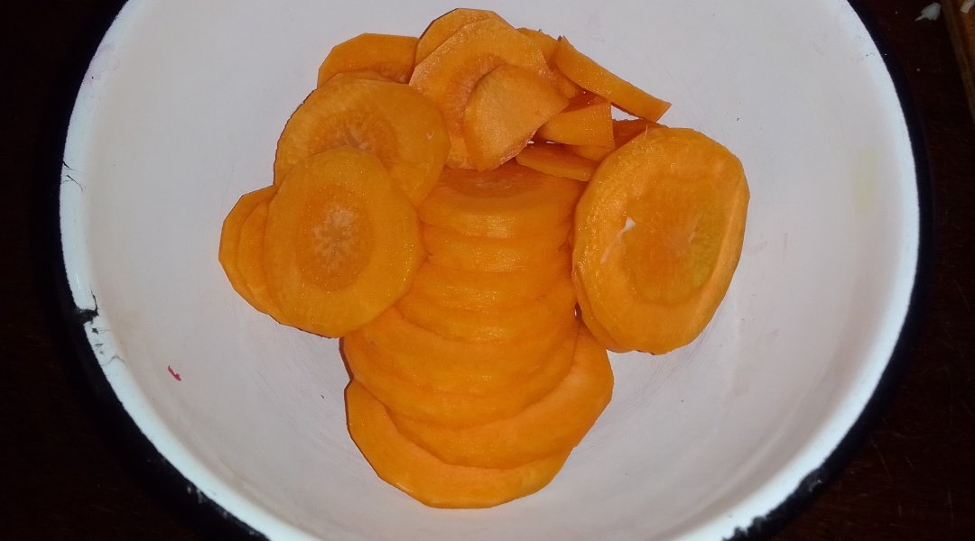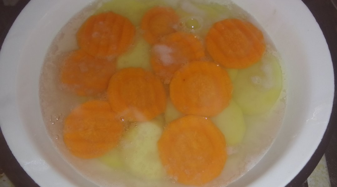 варившуюся в моём бульоне морковь предварительно размяв её вилкой.