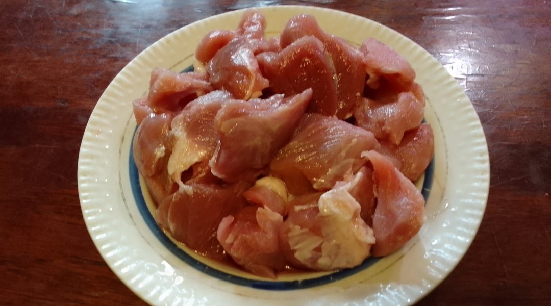 Помойте мясо, удалите лишние плёнки, уберите лишний жир. Порежьте