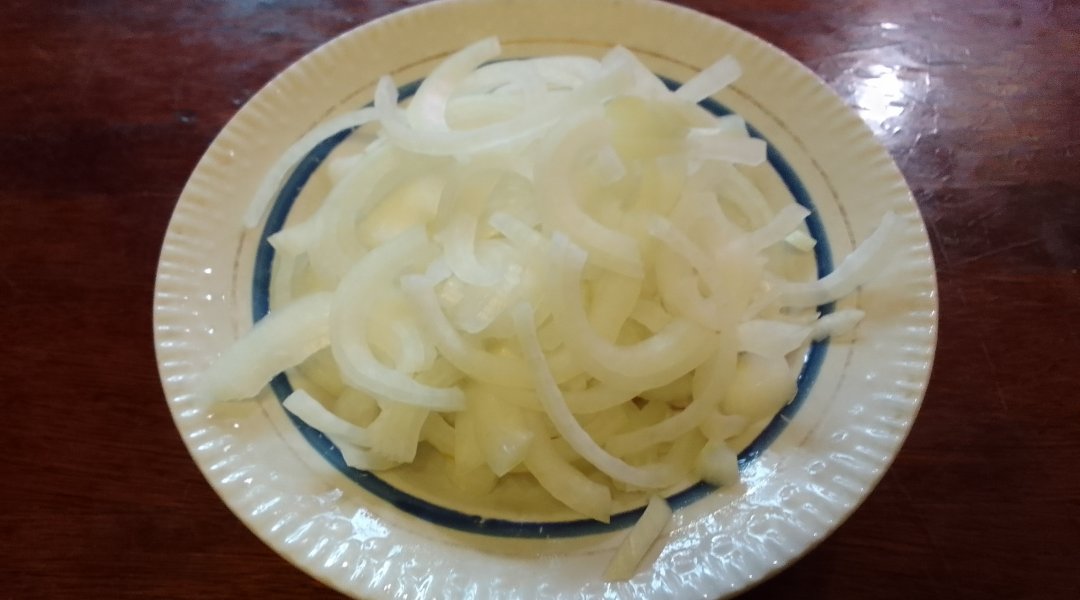 Возьмите большую луковицу. Почистите её и порежьте полукольцами.
