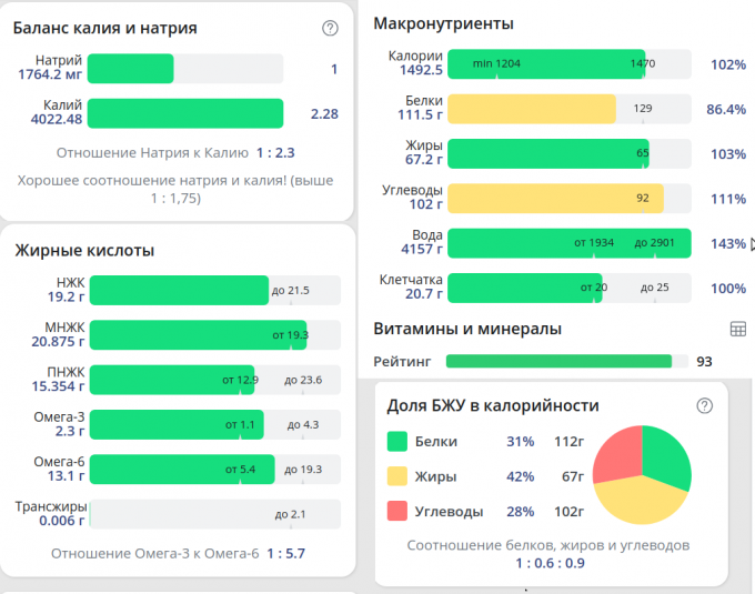 | Итого за день | 3647 | 1280 | 87 | 55 | 100 |