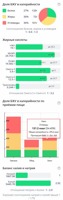 | Итого за день | 6662 | 1798 | 120 | 71 | 160 |