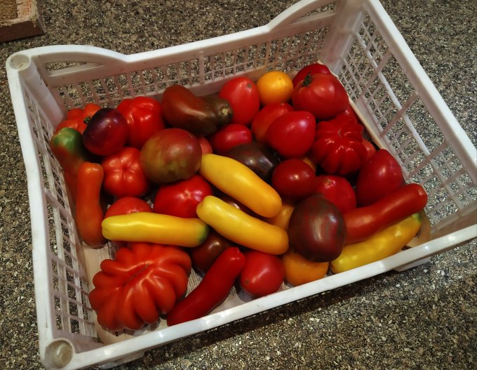 Помидорки с огорода, теща снабжает, это натур продукт, совсем другой вкус, это не то что будет продаваться зимой, голимая пластмасса. Период заготовок, стараемся все делать вкусно и полезно))). Дегидратор работает практически круглосуточно.