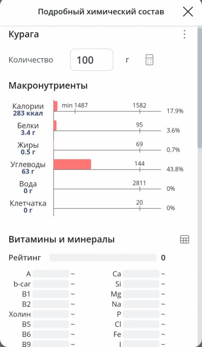 | Кол-во | Калории | Белки | Жиры | Углеводы | |
