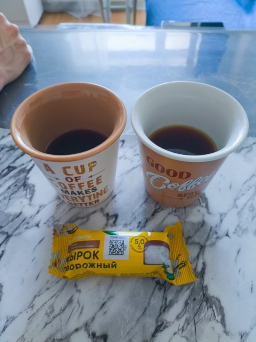 • Перекус: кофе в воронке Оригами, сырок творожный с ванилью в молочном шоколаде.
