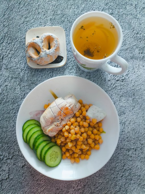 • Ужин: рулетик из куриной грудки с сыром Фета, нут с низкоуглеводным соусом Тартар, огурец, чай травяной, пряник заварной Смаковая булочка.